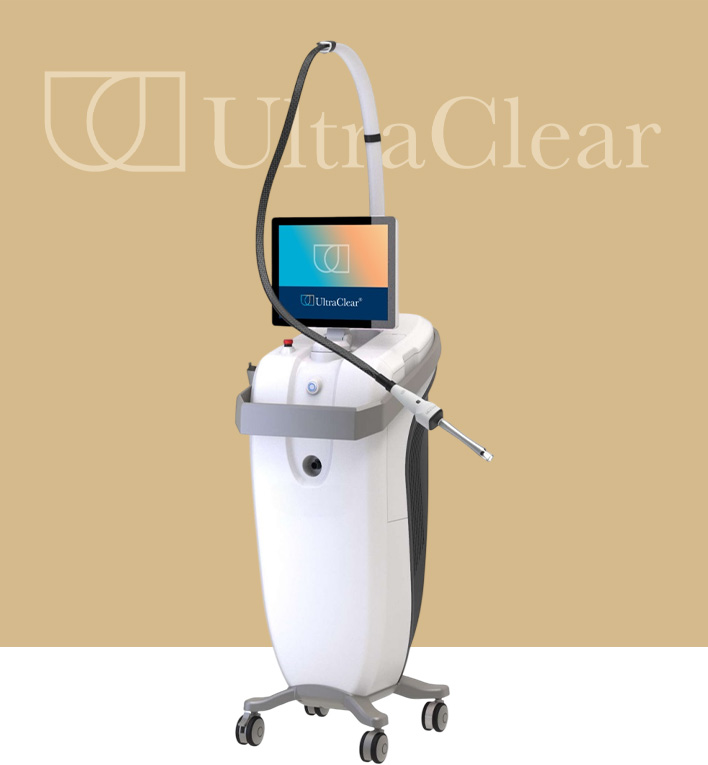UltraClear is a next-generation, 2910 nm cold fiber laser that resurfaces skin and stimulates collagen with less downtime than traditional CO2 lasers. Flexible settings make it suitable for a range of concerns, including: